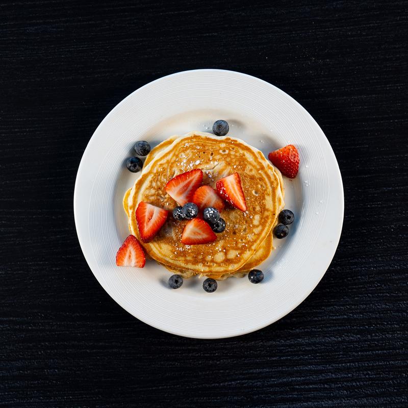 Single $5.99 | Short Stack (2) $8.79 | Tall Stack (3) $10.99 • Light and fluffy with soft butter and warm maple syrup • Add Fresh Strawberries or Blueberries and Whipped Cream +$4.99