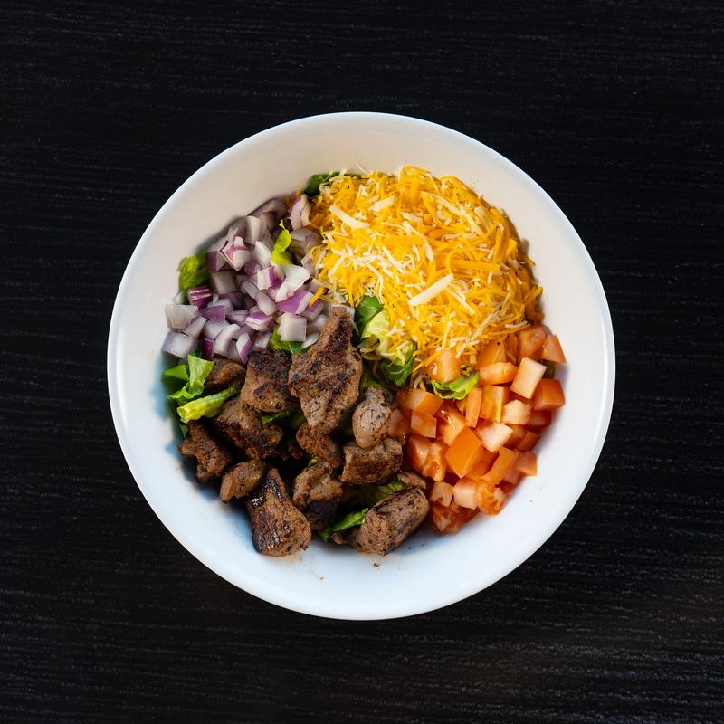 Seasoned ground beef or fajita chicken, chopped romaine, shredded cheddar cheese, diced tomatoes, and sliced jalapeños served in a deep fried flour taco shell bowl. Served with sour cream and pico de gallo