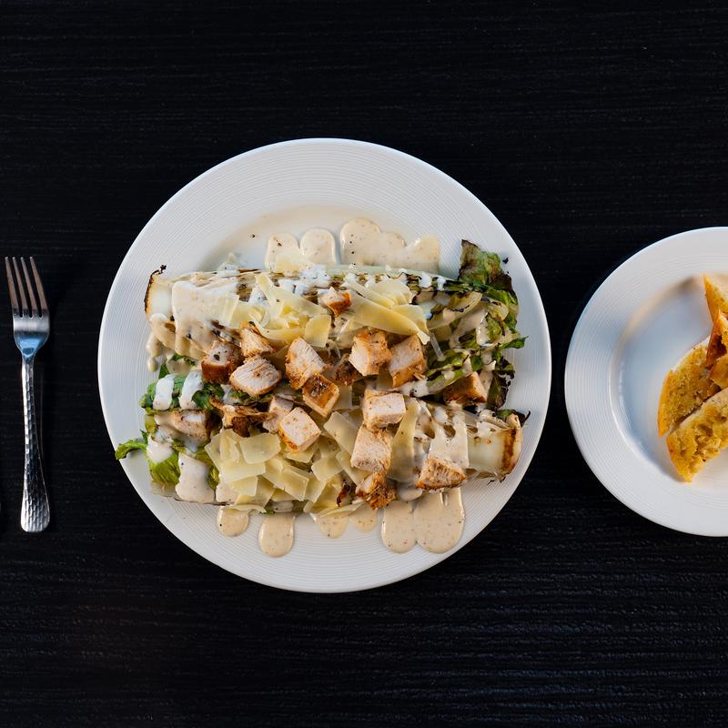 Your choice of grilled romaine heart or tossed romaine with Caesar dressing, shaved Parmesan, croutons, and grilled lemon • Add: Grilled Chicken +$5.99 | Grilled Shrimp +$6.99
