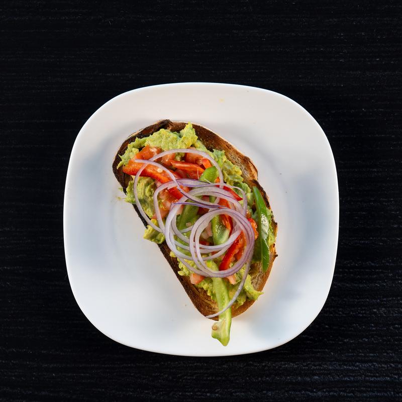 Mashed avocado on toast with diced tomato • Add: Egg +$1.99 | The Works: Egg, Red Onion, and Fresh Bell Peppers +$5.95